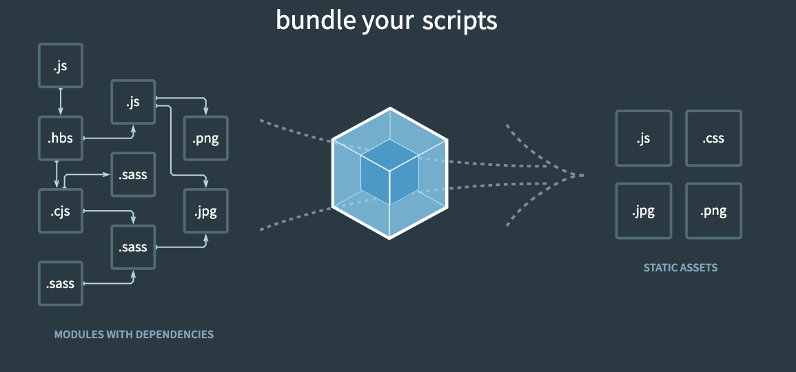 webpack์ด๋, ๋ชจ๋ํํ ์ฌ๋ฌ ๊ฐ์ ํ์ผ์ ๋ชจ์ ์ฃผ๋ ๋ฒ๋ค๋ฌ์ ๋๋ค. ๋ฒ๋ค๋ฌ๋ ์ด ์ธ์๋ 'Rollup'๊ณผ 'Parcel'์ด ์์ต๋๋ค.