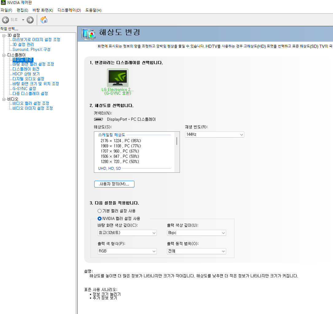 ์๋น๋์ ์ ์ดํ - ํด์๋ ๋ณ๊ฒฝ์์ ๊ธฐ๋ณธ์ปฌ๋ฌ ์ค์ ์ฌ์ฉ์ NVIDIA ์ปฌ๋ฌ ์ค์ ์ผ๋ก ๋ฐ๊ฟ๋ณด์ธ์.