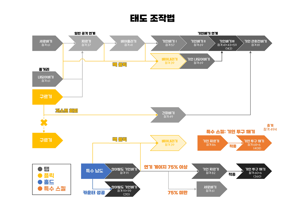 ํญ์ ๋ฐ๋ณตํ๋ฉด ์ผ๋ฐ ๊ณต๊ฒฉ ์ฐ๊ณ(์ธ๋ก๋ฒ ๊ธฐ, ์ฐ๋ฅด๊ธฐ, ๋ฒ ์ด์ฌ๋ฆฌ๊ธฐ) ํ์ ๊ธฐ์ธ ๋ฒ ๊ธฐ ์ฐ๊ณ๋ก ๋์ด๊ฐ.