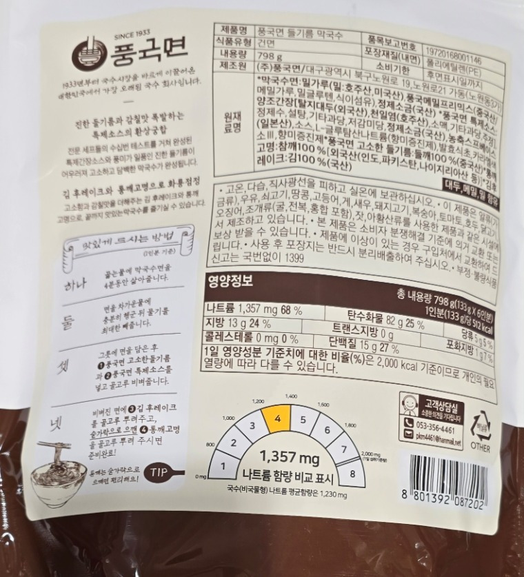 ํ๊ตญ๋ฉด ๋ค๊ธฐ๋ฆ ๋ง๊ตญ์ 133g x 6๊ฐ์ 798g 6์ธ๋ถ ๋ฆฌ๋ทฐ