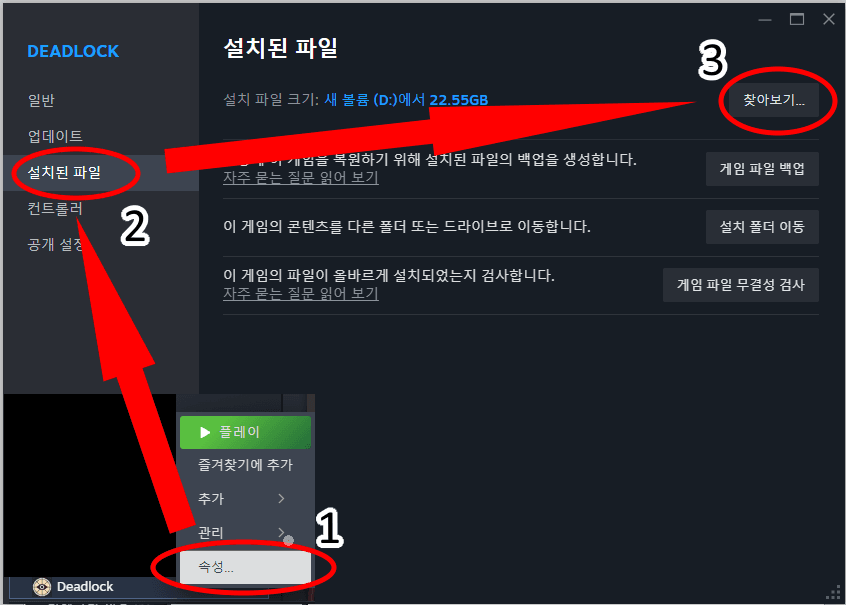 SteamLibrary\steamapps\common\Deadlock\game ์ ํด๋นํ๋ ํด๋ ํ์ผ ๋ฎ์ด์ฐ๊ธฐ ํ๋ฉด ๋จ